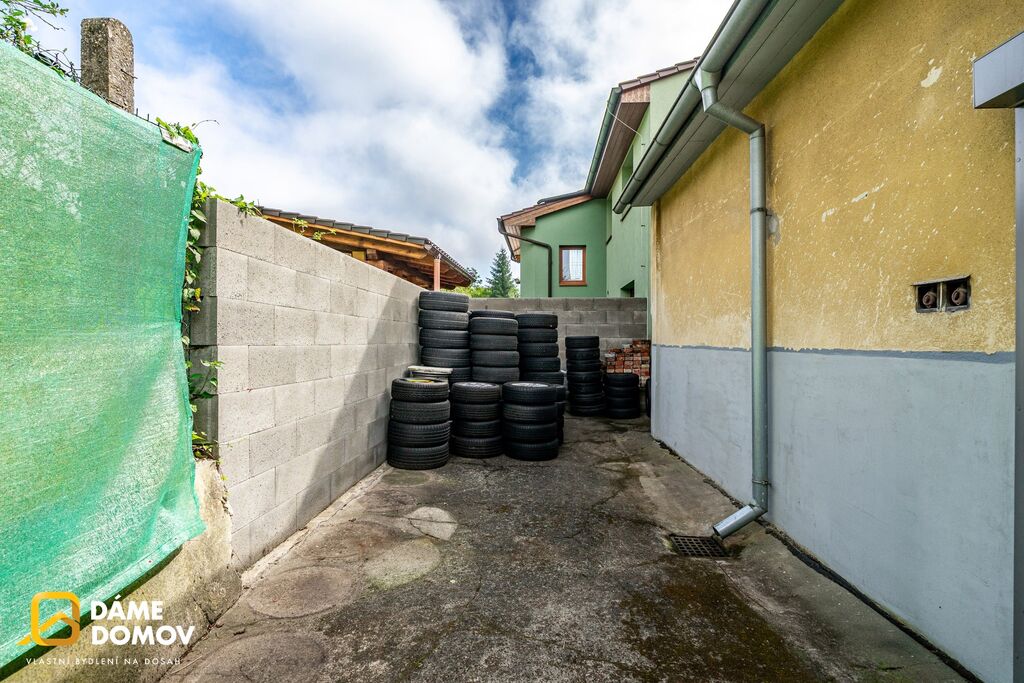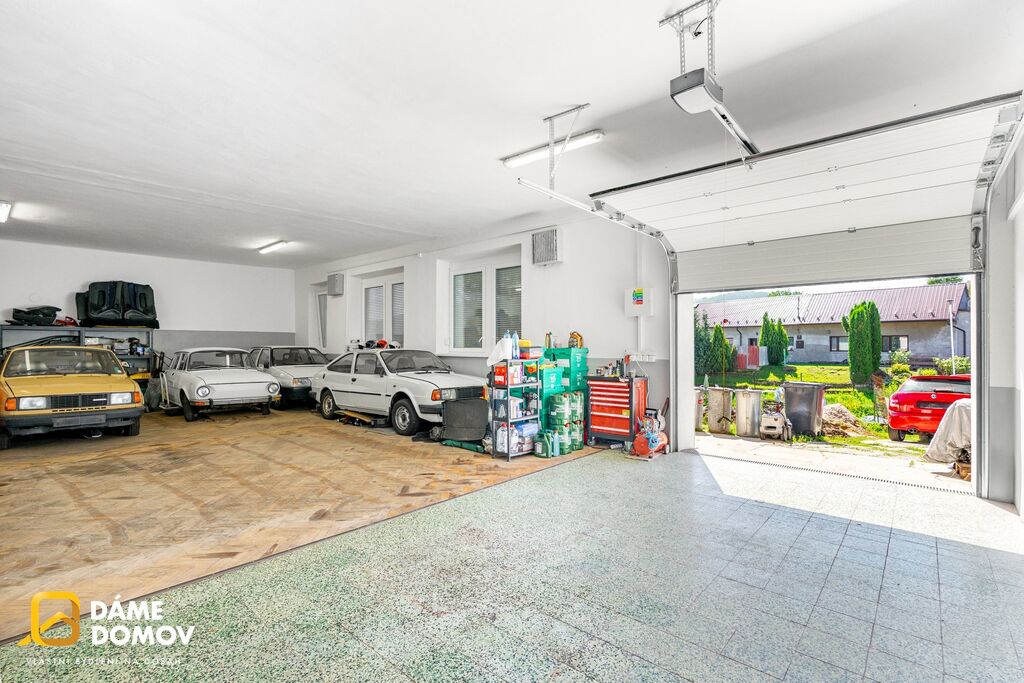 Nemovitost je v dobrém technickém stavu a je napojena na elektřinu, obecní vodovod i kanalizaci. Dominantou je hlavní místnost – „sál“ – s vjezdem přes elektricky ovládaná vrata kde uskladníte až 15 aut nebo mnoho motocyklů. Dále je zde kancelář, kuchyňka, sociální zázemí (toalety, sprcha) a sklep. Bočním průchodem se dostanete na zadní dvorek, včetně úložného prostoru a vstupu na půdu, která nabízí možnost rozšíření obytné či užitné části.