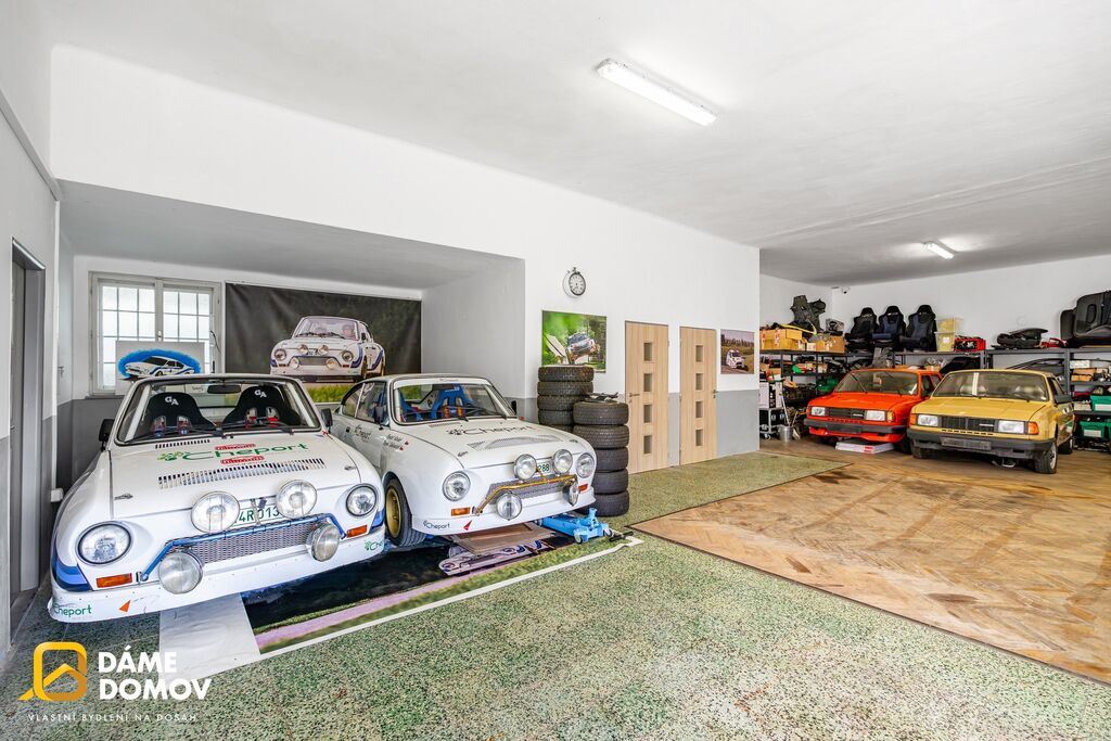 Současné využití objektu je ideální pro sběratele, nadšence do automobilů a motorek, nebo pro více vlastníků, kteří potřebují bezpečné a kryté parkování. Díky dispozici a poloze se po jednoduché úpravě nabízí i široké spektrum dalších možností pro Vaše potřeby. Rodinný dům pro bydlení, nebo pronájem, kombinace bydlení a podnikání, dílna, sklad, případně jiné činnosti pro veřejnost, nebo svou potřebu.
