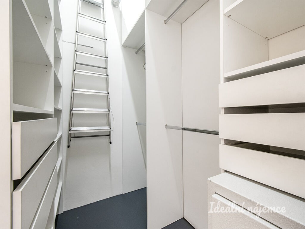 Celková rekonstrukce bytu proběhla v roce 2017. Jeho dominantou je obývací pokoj s velkoformátovými okny a elegantní galerií. Celý prostor je maximálně prosvětlený a působí vzdušně – ideální místo pro ty, kdo chtějí bydlet originálně a stylově. Součástí hlavní místnosti je vestavěná knihovna.