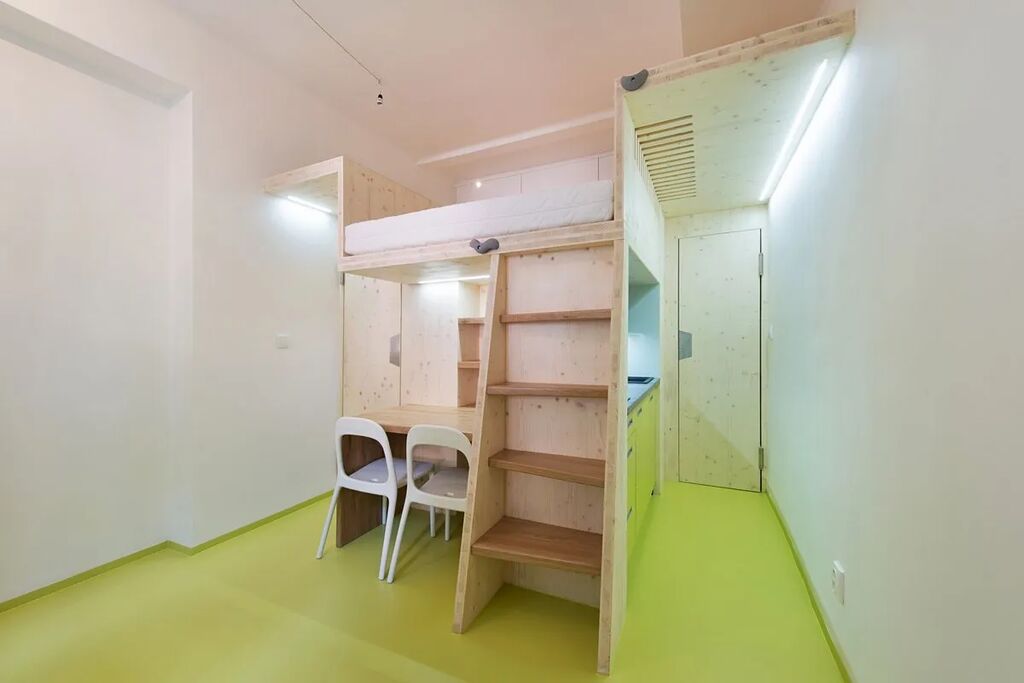 Jednotka je koncipována jako studentské bydlení a současné dispoziční řešení tomu odpovídá – i přes formální označení jako nebytový prostor je prakticky využívána k bydlení.