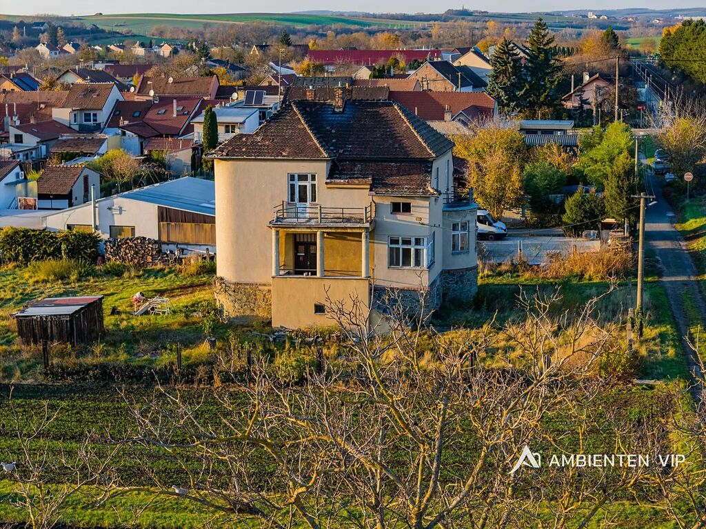 Jménem AMBIENTEN VIP si vám dovoluji exkluzivně nabídnout prvorepublikovou vilu postavenou v meziválečném období v obci Křenovice u Slavkova. Vila stojí na rozsáhlém pozemku o velikosti 2 142 m² a svým charakterem, historií a potenciálem představuje výjimečné místo pro vznik luxusního rodinného sídla či reprezentační rezidenci se soukromím. Celková plocha domu aktuálně činí 305 m², přičemž dle architektonické studie je plánované plochu rozšířit až na 379 m² a upravit dispozici na 9+kk. Vizualizace nabízí pohled na vilu dle studie.