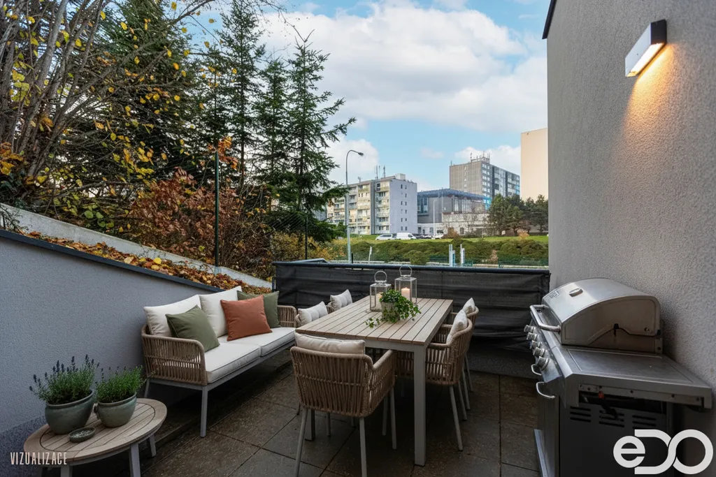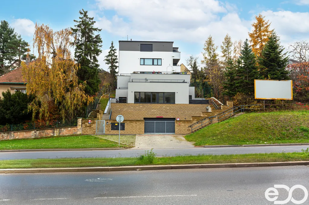 Velmi rád Vám v zastoupení majitele k prodeji nabízím exkluzivní a prostornou jednotku o dispozici 3+kk a podlahové ploše 87 m², která je kolaudována jako kancelář, avšak svou dispozicí, vybavením i provedením plně odpovídá modernímu bydlení. Jednotka je v osobním vlastnictví, nachází se v samostatně stojící skeletové novostavbě s výtahem a je součástí projektu Terasy Plzeňská, v pražské čtvrti Stodůlky. Jedná se o moderní terasovitou budovu s čistou architekturou, která svým stupňovitým usazením nabízí soukromí, dostatek světla a příjemné propojení interiéru s venkovním prostorem. K jednotce náleží terasa (10,7 m²) s navazující svahovitou předzahrádkou (12,8 m²), sklepní kóje (5,2 m²) a vlastní venkovní parkovací stání. Oficiálně je jednotka zapsána v 1. PP, nicméně díky terasovitému usazení domu je z úrovně hlavního vstupu situována v 2. nadzemním podlaží.