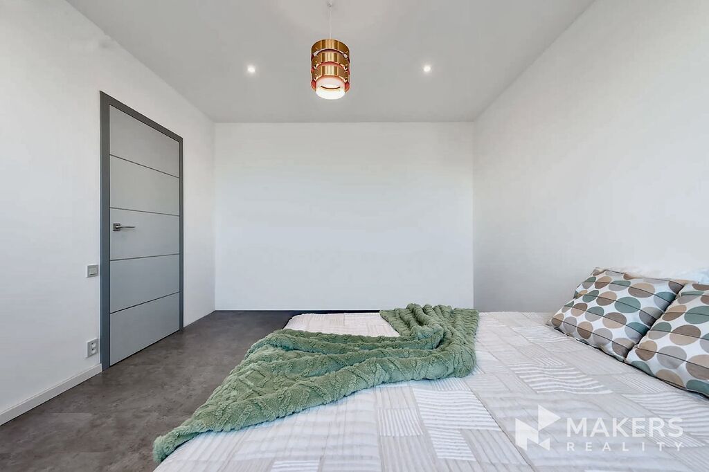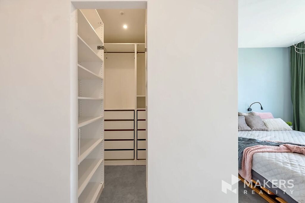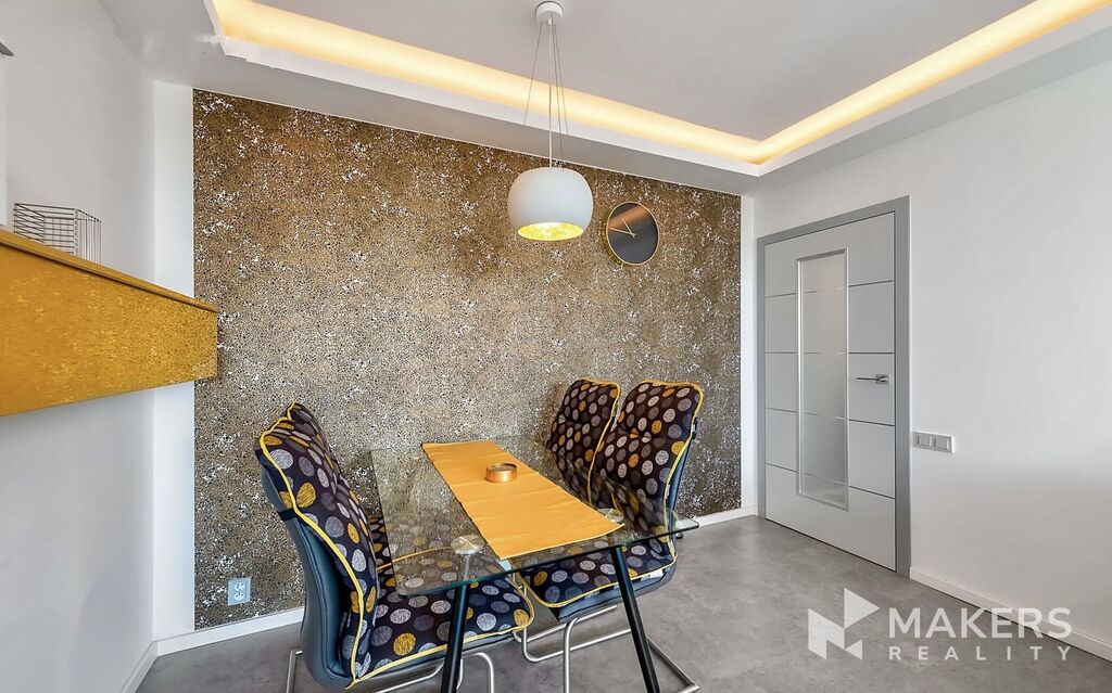 Dispozice bytu zahrnuje obývací pokoj s lodžií orientovanou na západ, ideální pro večerní posezení, dále novou sedací soupravu s elektrickým výsuvem, která může sloužit i pro příležitostné spaní, hlavní ložnici s vlastní walk-in šatnou a druhou ložnici či pracovnu orientovanou na severovýchod – ideální pro práci z domova.
