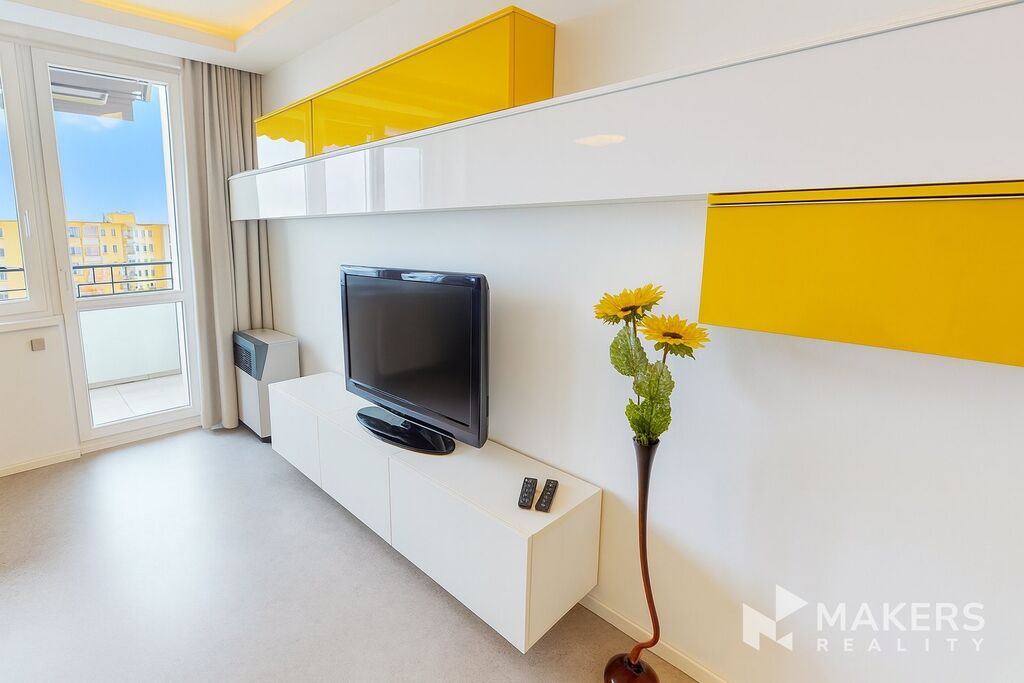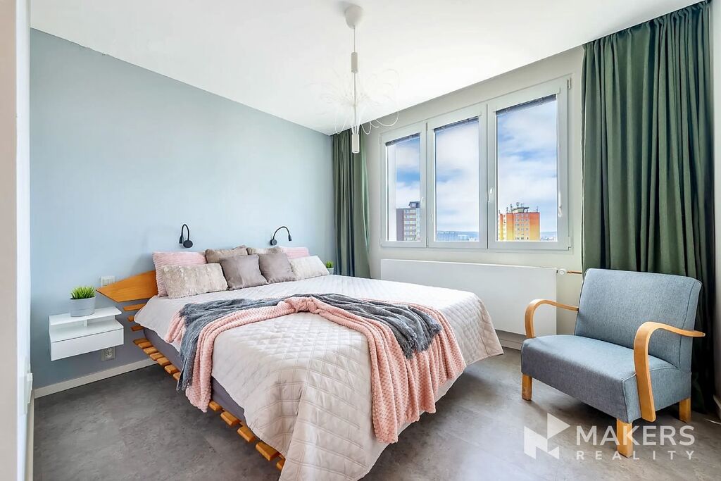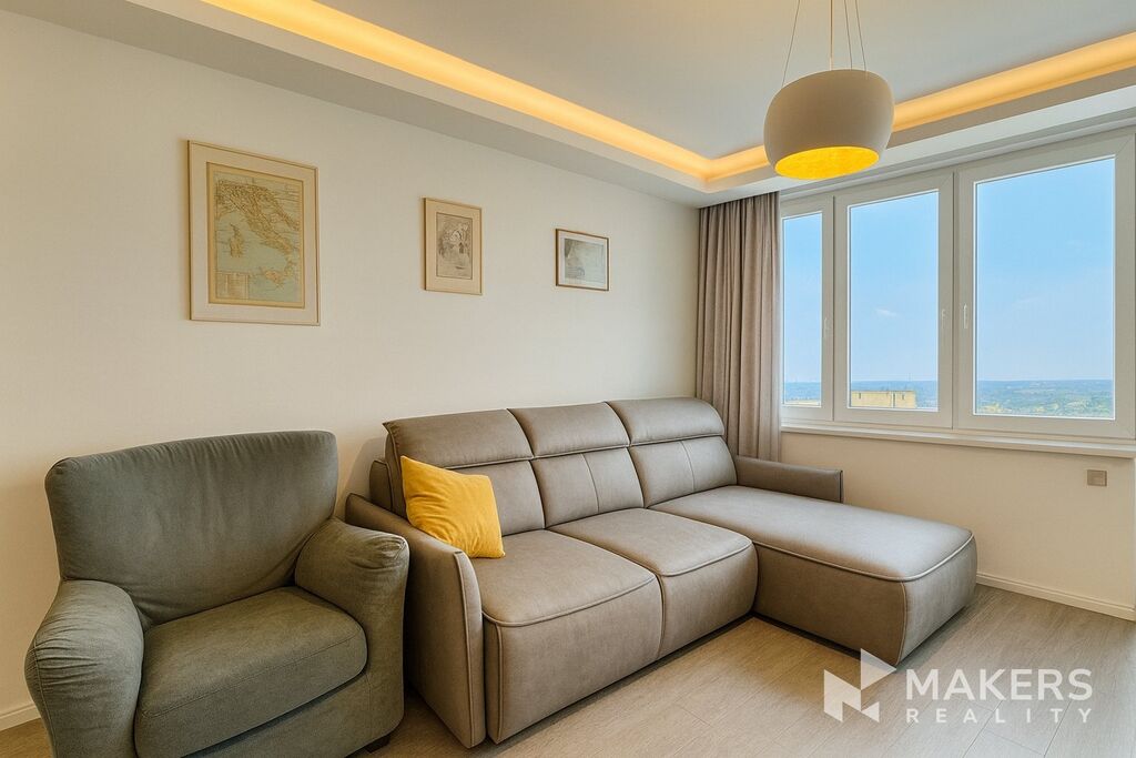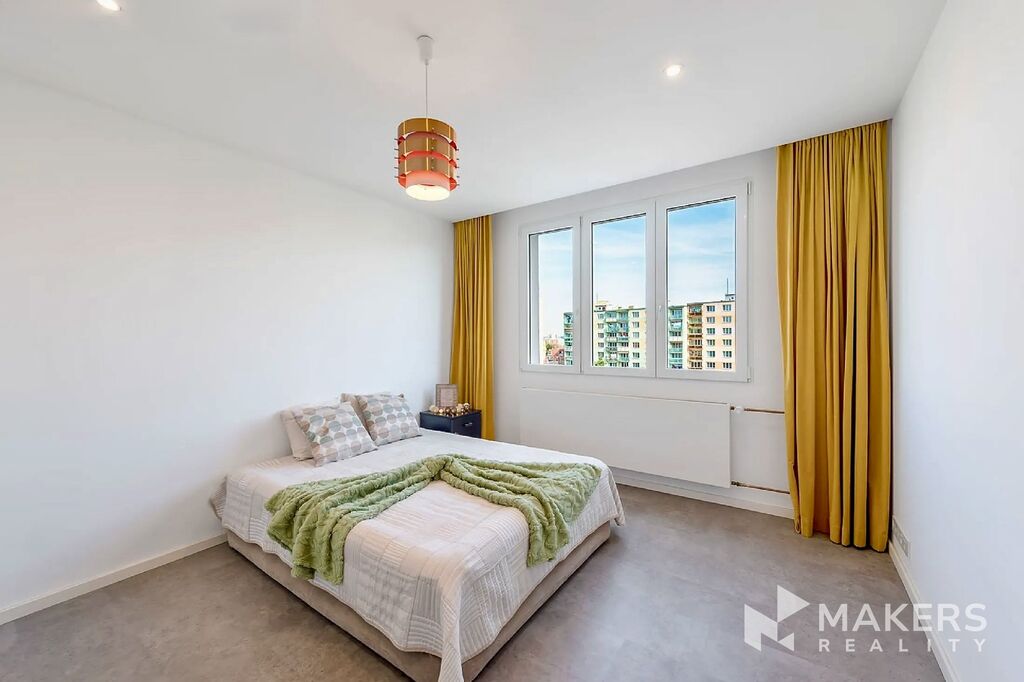 Nabízíme k pronájmu efektivně zařízený, slunný byt 3+1 o velikosti 83 m² po kompletní rekonstrukci, umístěný v 7.NP z celkových 8 udržovaného panelového domu s výtahem. Umístění ve vyšším patře dodává bytu výjimečný charakter – nabízí klid, soukromí, panoramatické výhledy na Lhotecký les i okouzlující západy slunce.
