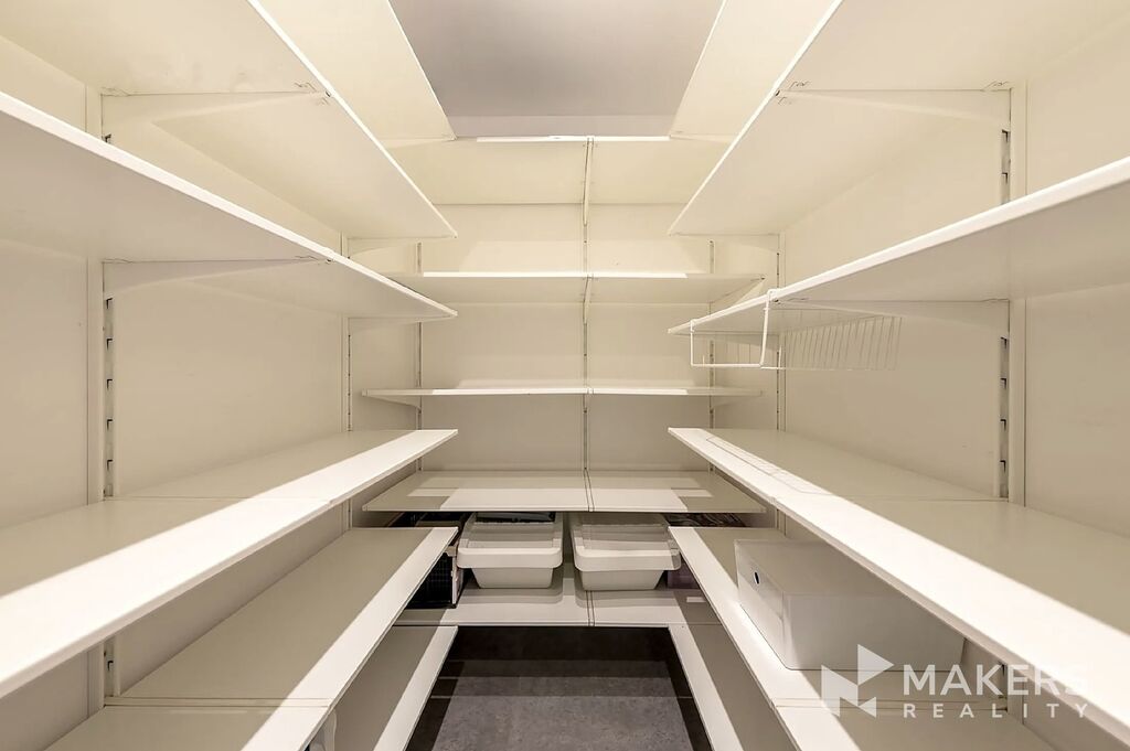 Součástí je také samostatná plně vybavená kuchyně (lakovaná kuchyňská linka a vestavné spotřebiče Whirlpool), prostorná koupelna, samostatné WC, mimořádně velká komora a dostatek úložných prostor, včetně vestavěných skříní a walk-in šatny.