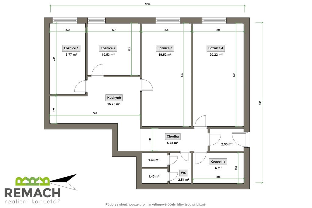 Pronájem ubytování, Uherské Hradiště, náměstí Republiky, 92 m2