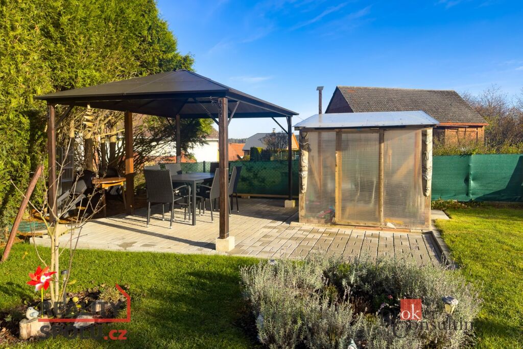 K bytu náleží vlastní parkovací stání přímo u domu. Součástí prodeje je rovněž přilehlá, udržovaná zahrada s posezením pod pergolou a rovinatým pozemkem vhodným pro rodinné využití či relaxaci.