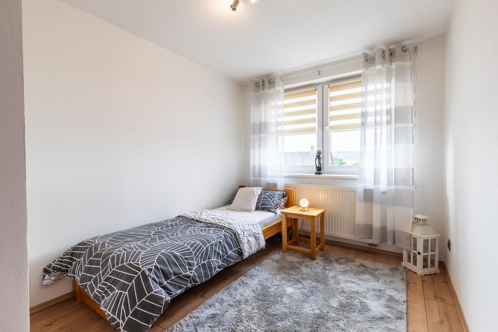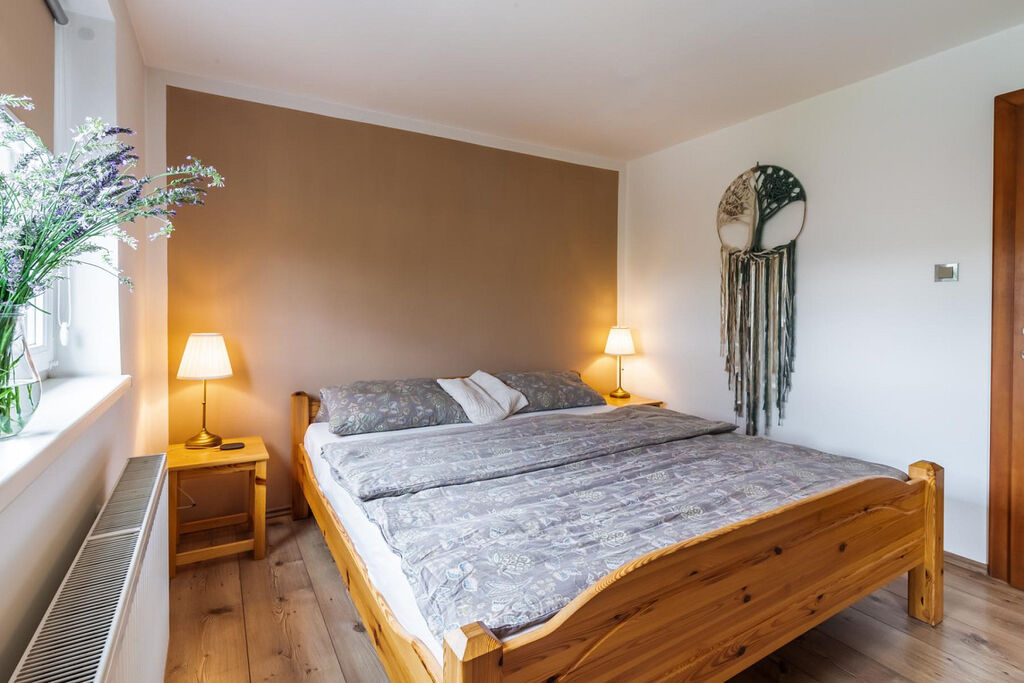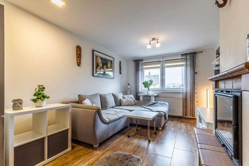 - Prostorný obývací pokoj s kuchyňským koutem, tři ložnice