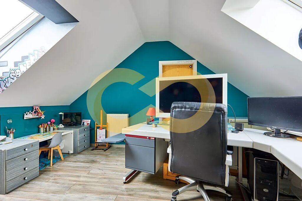 Dominantou domu je světlý obývací pokoj otevřený do krovu, díky čemuž působí prostorně, svěže a velmi moderně. Schodiště zde vede do otevřené pracovny, která se dívá přímo do obývacího prostoru. Je to ideální místo pro home office, klidné studium nebo knihovnu, kde se budete cítit nerušeně, ale stále propojeni s centrem dění v domě.
