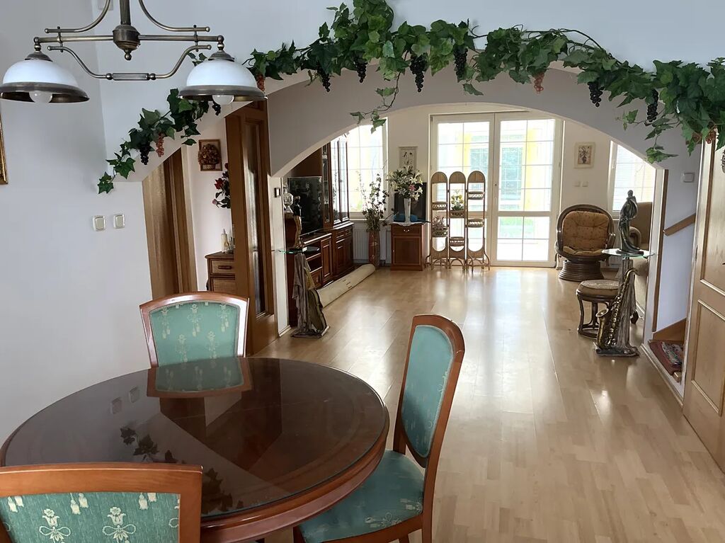 Celková obytná plocha činí 162 m2 s dispozicí 5+1 - v přízemí kuchyň, jídelna, komora, koupelna, velkorysý obývací pokoj se vstupem do zimní zahrady a východem na venkovní zahradu, garáž, sauna, prostor na zahradní nábytek, v patře pak čtyři pokoje (ložnice, dětský pokoj, pracovna atd.), každý se samostatným vchodem, rovněž se zde nachází další koupelna a lodžie. Dům disponuje dostatečnými úložnými prostory ať už v podobě místností (sklad, technická místnost, garáž) nebo vestavěných skříní.