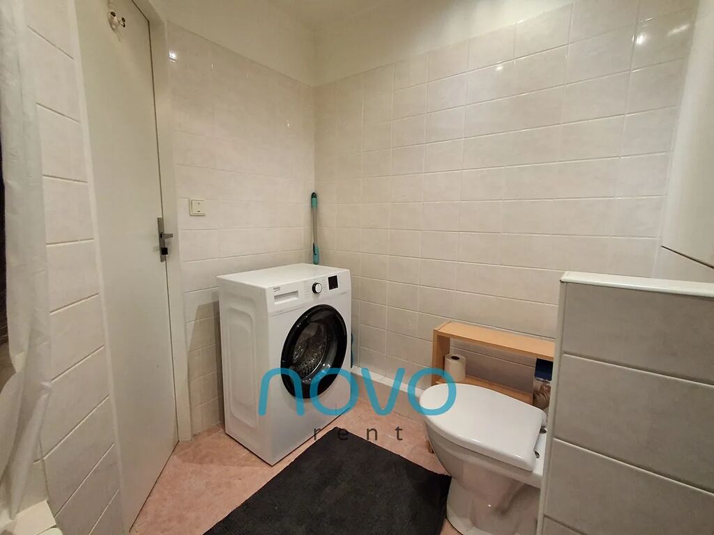 Dispozice bytu nabízí jednu samostatnou ložnici s velkou šatní skříní a postelí dále pak obývací pokoj s kuchyňským koutem. V koupelně naleznete vanu a zánovní pračku.