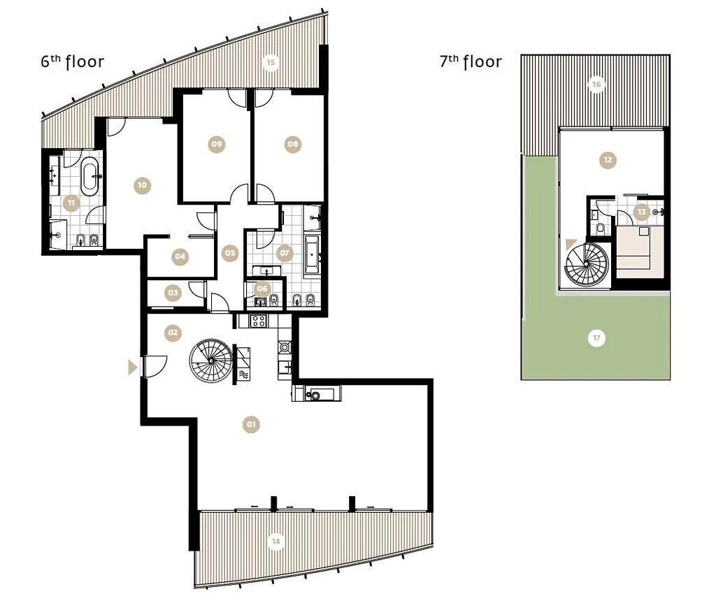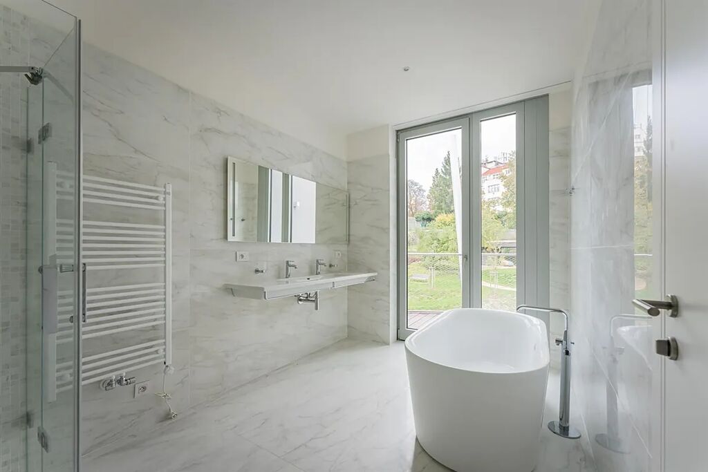 Luxusní nadstandardní moderní mezonet 5+kk (4 ložnice, 3 koupelny), s vlastním wellness & saunou, třemi terasami (28,24m2, 27,22m2, 25,5m2), zahradou 30,76 m2, celkovou obytnou plochou 211,7 m2, se nachází v 6. a 7. (posledním) patře v luxusním, v moderním rezidenčním komplexu s výtahem, recepcí, bazénem, saunou, prostornou zahradou ve dvoře, sklepem a možností parkování v podzemním parkovišti.