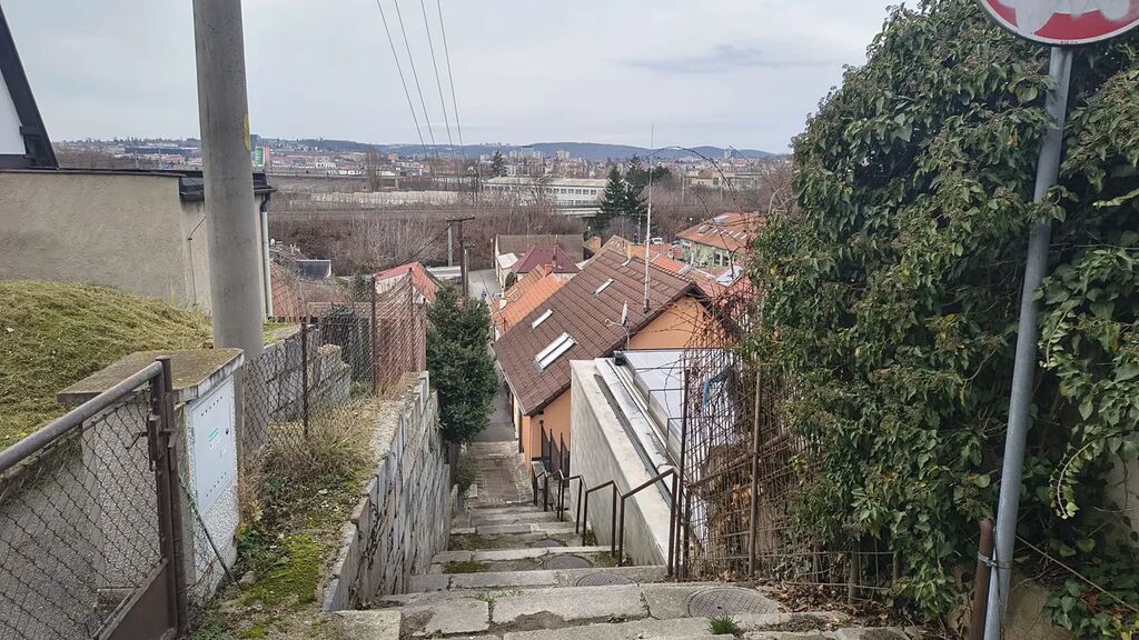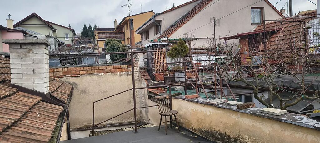 Nad kuchyní se nachází terasa přístupná po venkovním schodišti, odkud je vstup na půdu. Terasa nabízí nádherný výhled na Brno.