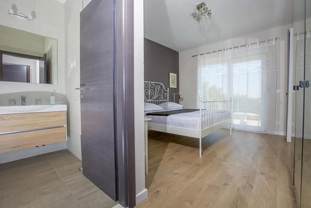 Dvoupodlažní vila o ploše 240 m2 byla v roce 2017 postavena na pozemku o rozloze 747 m2 a je podsklepena. V suterénu je posilovna, wellness, komora a prádelna. V přízemí se nachází velký obývací pokoj s jídelnou a kuchyňským koutem a koupelna. V prvním patře jsou čtyři koupelny a čtyři ložnice s balkony s otevřeným výhledem na moře. Vila se prodává kompletně zařízená a vybavená vestavěnou kuchyňskou linkou, keramickou dlažbou první třídy v koupelnách. Na pozemku je terasa ke slunění, bazén (20 m2) s nočním osvětlením a venkovní gril.