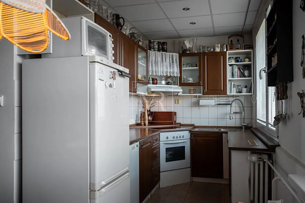 Nachází se ve 4. patře bez výtahu a je určen spíše k rekonstrukci. Přestože je velmi dobře dispozičně řešen, představuje také ideální možnost vytvořit si domov přesně podle svého vkusu. K dispozici je příjemná lodžie a také velká komora na patře o velikosti téměř 5 m², která poskytne opravdu štědrý úložný prostor. V přízemí domu je kočárkárna k užívání všem obyvatelům domu.