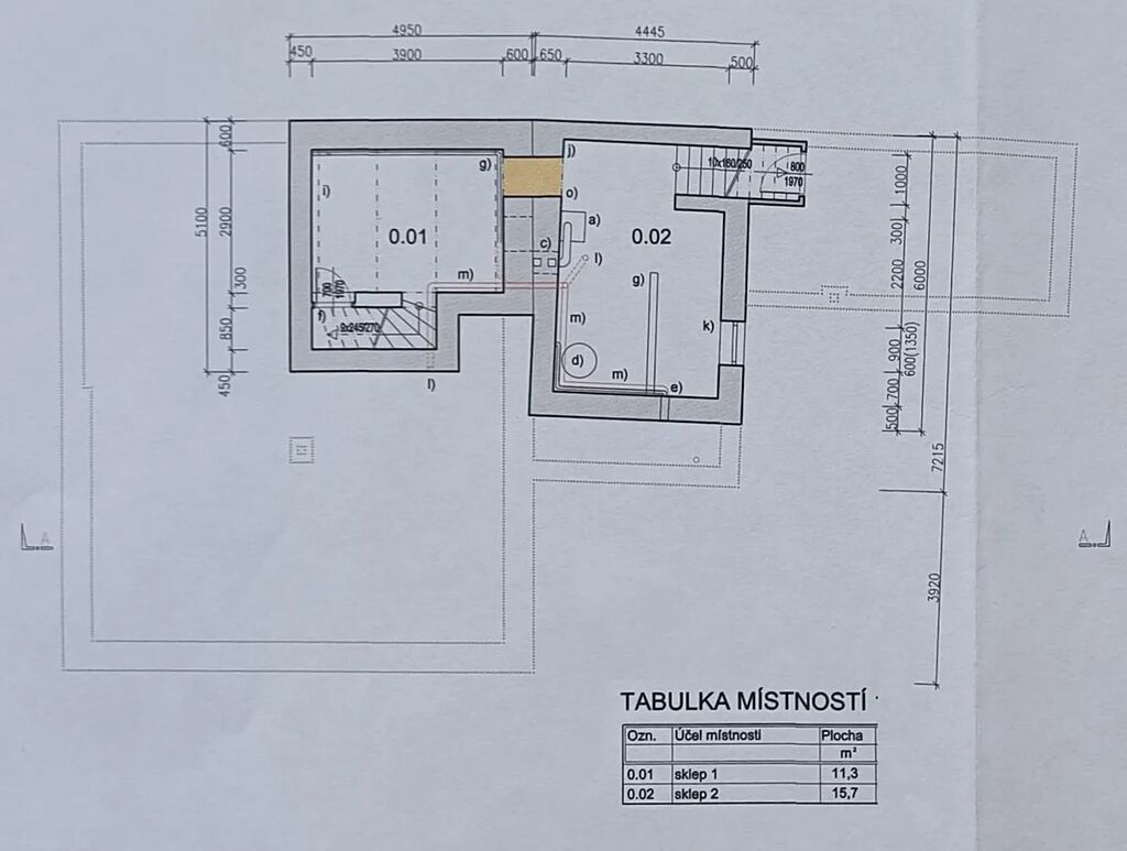 - sklep (celkem cca 27 m2) má dvě části, novou s technickým zázemím, plynovým kotlem, vodárnou. Druhá část je původní s klenutými stropy.
