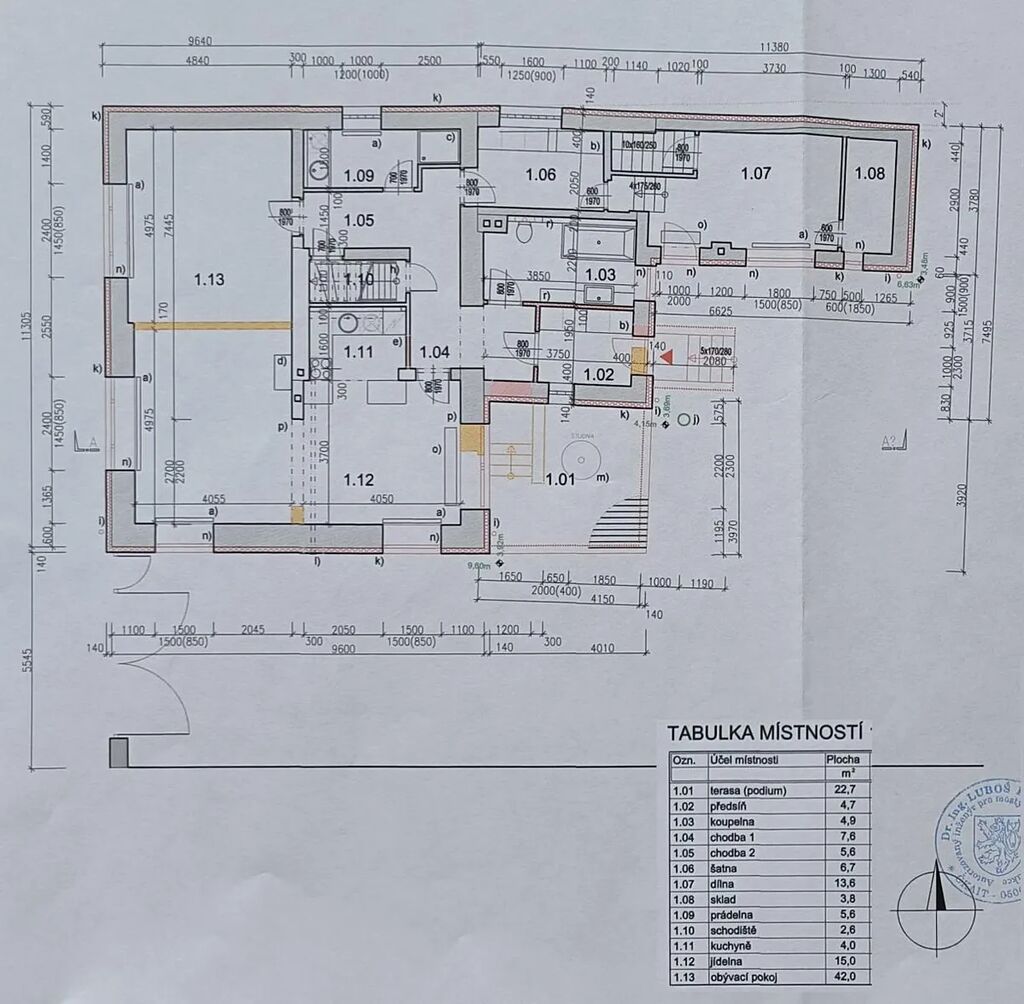 - v přízemí (cca 138,8 m2) domu najdeme vstup přes zastřešenou terasu (cca 23 m2) stíněnou vzrostlým ořešákem, kde se nachází skvělé místo pro setkávání s přáteli. Vstup do domu vede jednak přes předsíň a dále je zde možnost vstoupit do domu přes francouzské okno vedoucí do obývacího pokoje. Obývací pokoj je prostorný, okna s orientací na východ (na terasu), jih, a západ. Součástí je také otevřená kuchyň a jídelna. Obývací pokoj je možno také vytápět krbem s rozvodem tepla i do 2. NP. Dále je zde koupelna s vanou, druhá menší koupelna se sprchovým koutem a prostorem pro pračku, vstupy do šatny, do sklepa a schodiště (poněkud prudší) do 2. NP