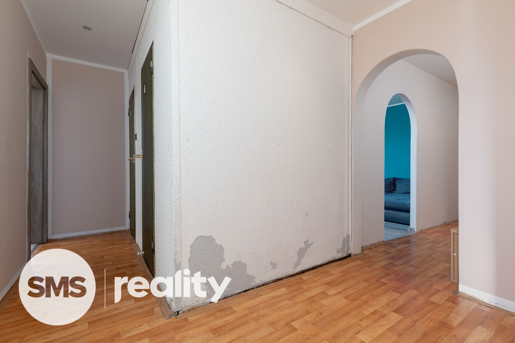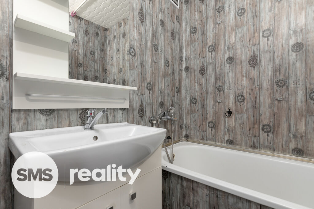 Koupelna je řešena v původním umakartovém jádru – ideální příležitost pro modernizaci podle vlastního stylu. Ložnice a dva pokoje navazují na chodbu, kde je také umístěna prostorná komora. K bytu náleží také sklepní kóje.
