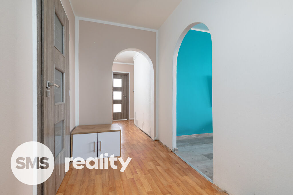 Koupelna je řešena v původním umakartovém jádru – ideální příležitost pro modernizaci podle vlastního stylu. Ložnice a dva pokoje navazují na chodbu, kde je také umístěna prostorná komora. K bytu náleží také sklepní kóje.