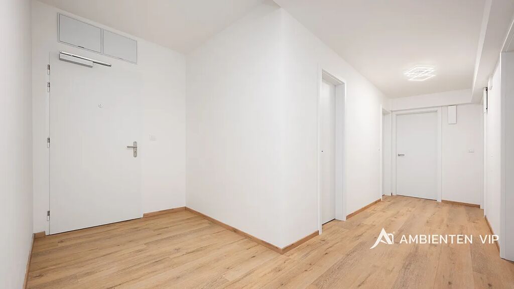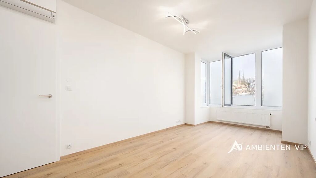 AMBIENTEN VIP si vám dovoluje nabídnout ke koupi ihned volnou bytovou jednotku 4+kk v novostavbě polyfunkční budovy, která se nachází jen pár kroků v bezprostřední blízkosti nákupního centra Vaňkovka. K bytu náleží sklepní kóje a je možnost odkoupit dvě garážová stání (každé jednotlivé za cenu 950.000,-- Kč). Výhodou je, že obě garážová stání jsou v bezprostřední blízkosti výtahu, který vás vyveze do 4 NP budovy. Z tří ložnic máte nádherné výhledy na brněnské dominanty. Okna všech pokojů mají přípravu na osazení venkovních žaluzií či rolet. Obývací pokoj s úžasnou krytou terasou je orientovaný do vnitrobloku směrem na jih. Celý vnitroblok je osázený zelení a terasa vám nabídne možnost příjemného posezení. Obrovskou výhodnou je, že je krytá. Koupelna disponuje vanou, toaletou, sprchovým koutem a je zde příprava pro pračku a sušičku. Dále je zde samostatná toaleta. Jednotka má 4 klimatizace a dále přívod vzduchu. Podlahy jsou plovoucí v dekoru dřeva. Dveře jsou v bílé barvě. Na terase je možnost si osadit dlažbu na terčích či zvolit variantu dřeva dle vlastní volby. Rozměry místnosti jsou: vstupní hala (14,2 m2), obývací pokoj s kuchyňským koutem (29,0 m2) s východem na balkon (10,4 m2) s výhledem do klidného vnitrobloku, pokoj se šatnou (19,7 m2), pokoj (19,5 m2), pokoj (12,3 m2), koupelna s WC (7,1 m2), samostatné WC, šatna (3,0 m2) a sklep (3,8 m2). Kolaudace bytové jednotky byla v roce 2022. Nemovitost nebyla nikdy obývána. Pokud hledáte bydlení v centru na strategické adrese s perfektním parkováním pár kroků do centra s možností si bytovou jednotku udělat dle vlastních představ, tak si neváhejte sjednat prohlídku s námi. Pomůžeme vám také zajistit její kompletní vybavení nábytkem a realizaci interiéru na klíč v případě zájmu.