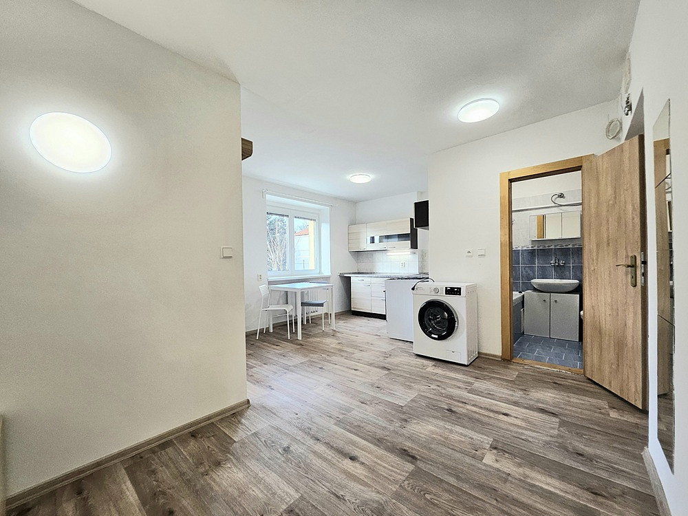 Celková plocha činí 31 m², nabízí se částečně nezařízený, je zde zánovní kuchyňská linka, kombinovaný sporák, nová lednice s mrazničkou, nová pračka, jídelní stůl a židličky, 2x policový díl.