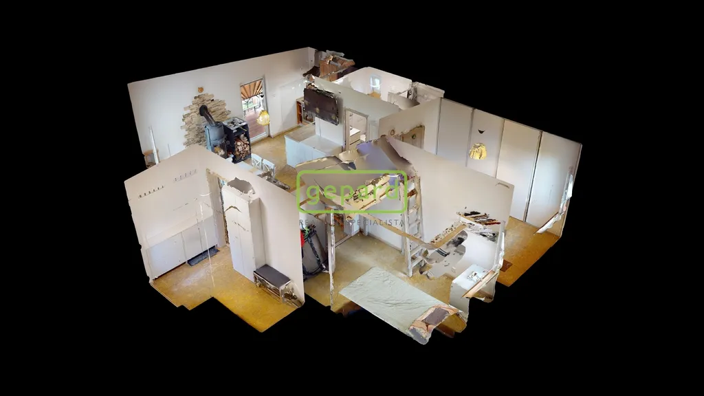 Vytápění zajišťuje krb na dřevo, teplou vodu ohřívá elektrický bojler. Podlahy jsou vyrobeny z dvojitých OSB desek o tloušťce 18 mm, natřených osmo barvou a třikrát lakovaných vodním lakem – jedná se o velmi odolné, téměř „nesmrtelné“ řešení s minimálními nároky na údržbu. Stropy mají přiznanou výšku 2,5–3,2 m, díky čemuž interiér působí svěže a vzdušně.