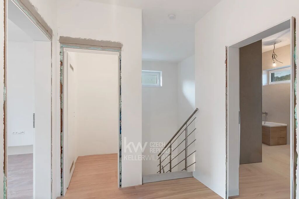 V případě zájmu je možné přikoupit také sousední pozemek o výměře přibližně 750 m², který rozšiřuje možnosti využití, jako například pro větší zahradu, výběh pro děti nebo samostatné zázemí. Dům se opírá o samotný okraj zástavby a za jeho zády už začíná svět zeleně a lesů. Díky tomu tu žijete na dotek přírody, ale přitom s komfortem plnohodnotného bydlení.