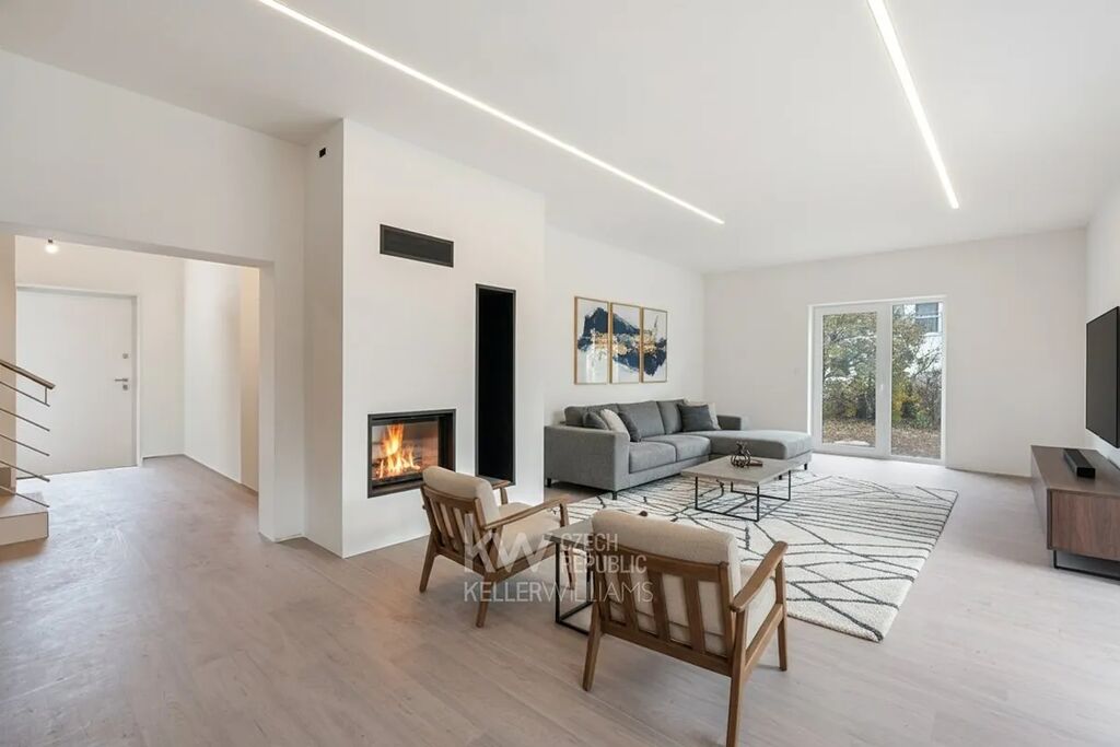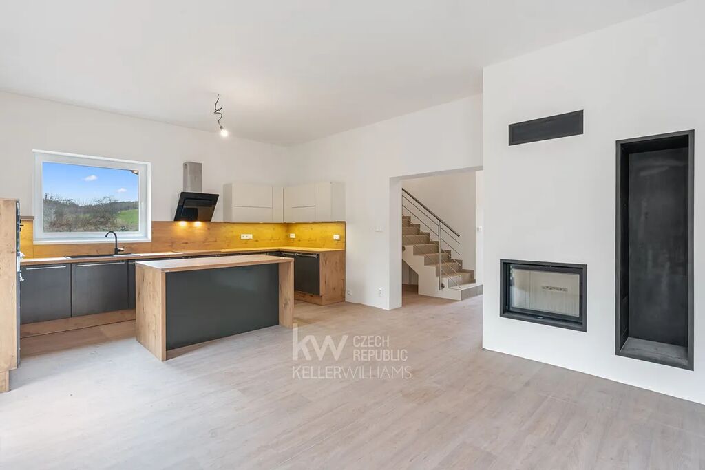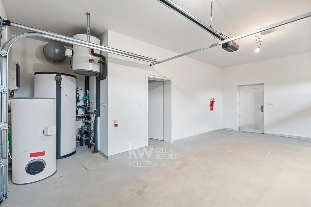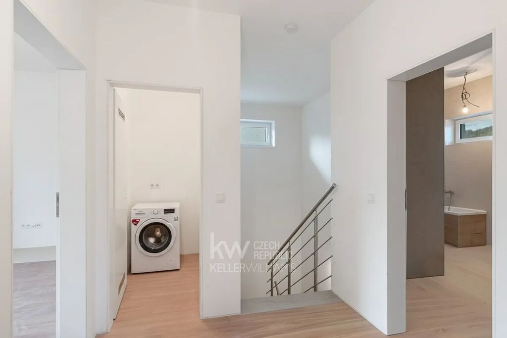 V klidné a malebné obci Chrustenice, obklopené lesy Českého krasu, vzniká moderní rodinný dům 5+kk s celkovou plochou* 203 m² na pozemku o velikosti 753 m². Dům je navržen jako dvoupodlažní, s velkorysým obývacím prostorem, pracovnou v přízemí, dvěma ložnicemi v patře a pokojem navíc. Součástí je také garáž, technická místnost a dvě koupelny. Dispozice je řešená tak, aby nabídla dostatek prostoru pro každodenní rodinný život i zázemí pro práci z domova.
