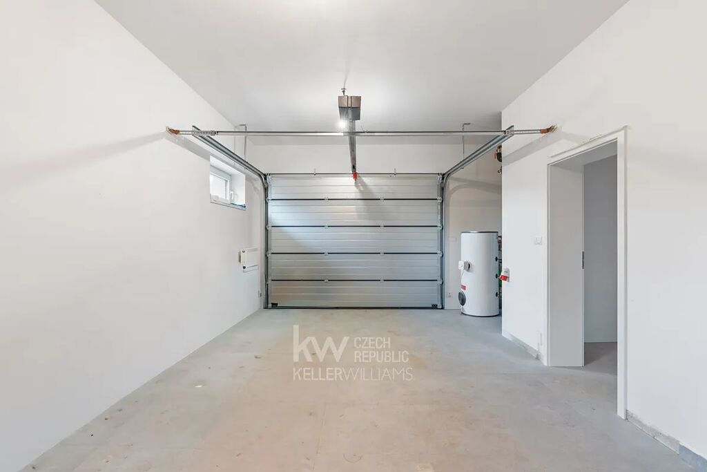 Exteriér počítá s dlažbou na příjezdu i vstupu, oplocením pozemku a elektrickou bránou. Všechny inženýrské sítě jsou k dispozici, příjezdová komunikace bude dokončena po uzavření stavebních prací. Zahradní úpravy, terasa nebo pergola je možné realizovat formou klientských změn.