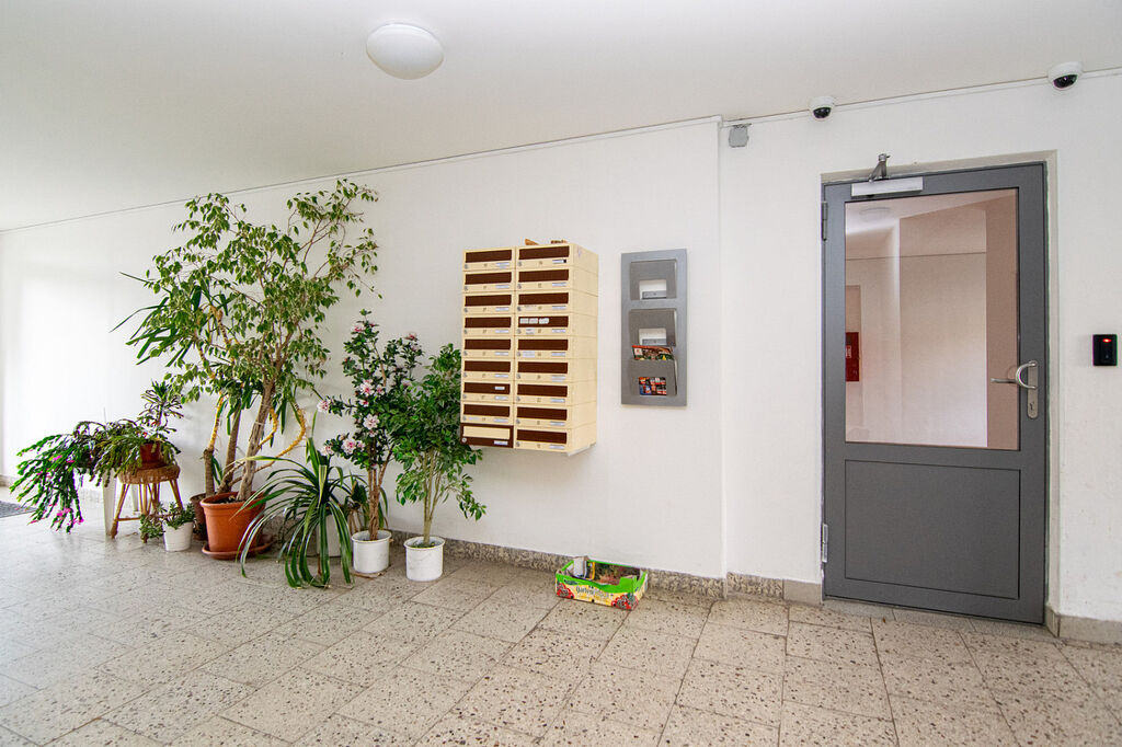 Byt je umístěn v revitalizovaném panelovém domě, který je udržovaný a ve velmi dobrém stavu. K bytu náleží spoluvlastnický podíl na oplocené předzahrádce u domu, kterou mohou obyvatelé využívat k odpočinku nebo drobnému zahradničení.