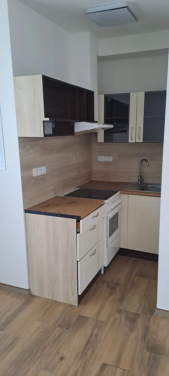 Vybavená kuch linka, pračka lednička k dispozici v bytě.