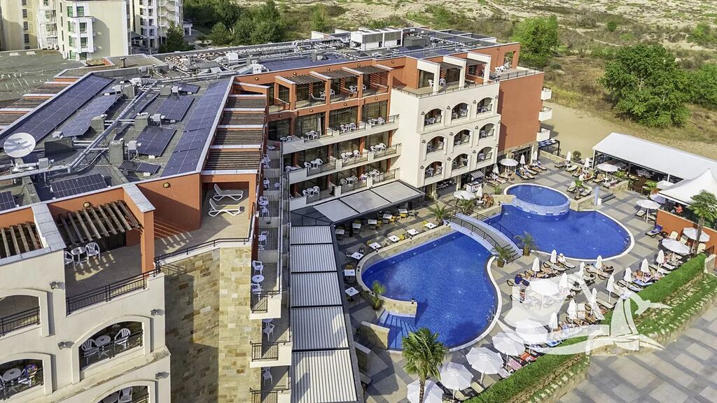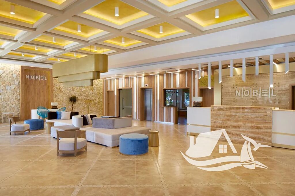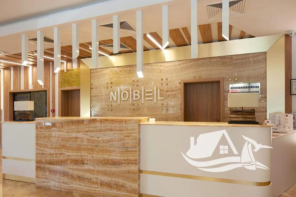 Komplex Nobel se nachází přibližně 300 metrů od moře a je vyhledávaným místem pro ty, kteří chtějí kombinovat blízkost pláže s klidným prostředím mimo hlavní turistický ruch. Nabízí široké zázemí – venkovní bazén s dětskou částí, lehátky a dostatkem prostoru pro relax, vnitřní bazén, saunu, kontrastní bazén i masáže. Pro aktivní životní styl je připravené fitness centrum, dvě restaurace, lobby bar i bar u bazénu. Součástí areálu je recepce, nepřetržitá ostraha a kamerový systém, stejně jako parkovací možnosti přímo u objektu. Roční poplatek za údržbu činí 8 eur za m².