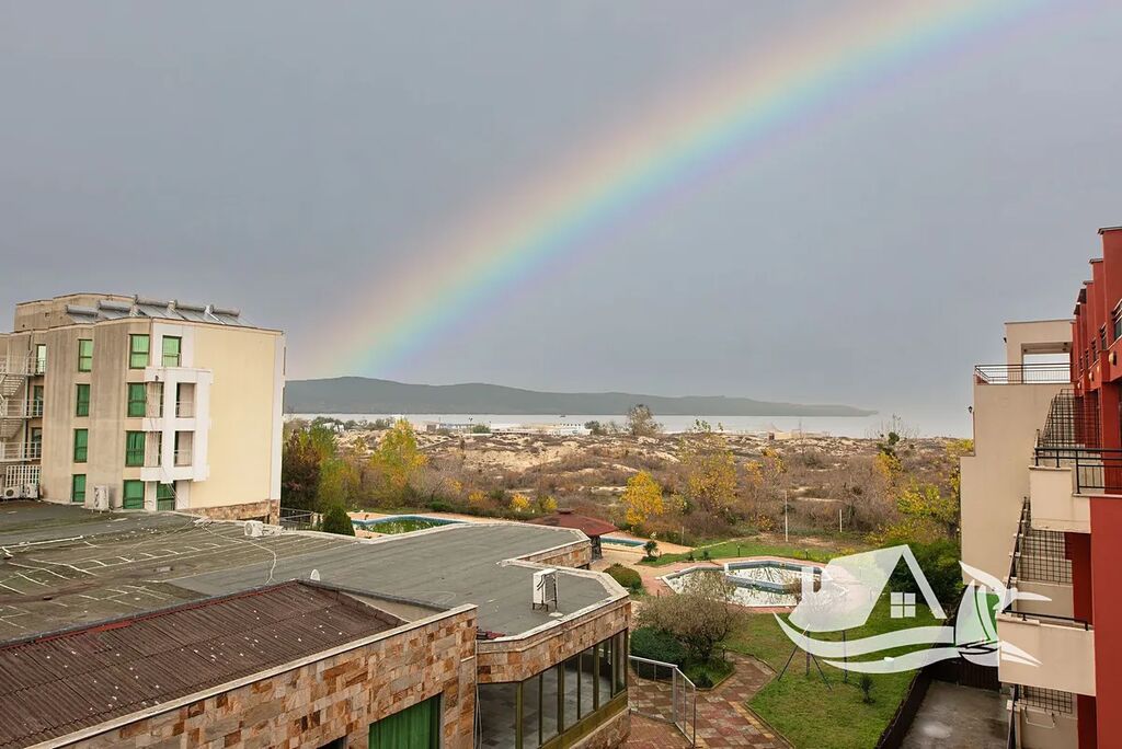 Na okraji rušného letoviska, tam kde se písečné duny dotýkají klidné části pobřeží, se nachází místo, které dokáže nabídnout harmonii mezi odpočinkem a životem u moře. Ve třetím podlaží oblíbeného komplexu Nobel na Slunečním pobřeží vás čeká apartmán 2+kk o celkové ploše 75,52 m², který působí lehce, prostorně a od prvního okamžiku přináší příjemný pocit domova. Díky prosvětlenému obývacímu pokoji s kuchyňským koutem, útulné ložnici, koupelně a balkonu s výhledem na moře, nabízí ideální podmínky pro rekreaci i celoroční užívání. Prodává se včetně kompletního vybavení, takže je připraven okamžitě sloužit svým novým majitelům.