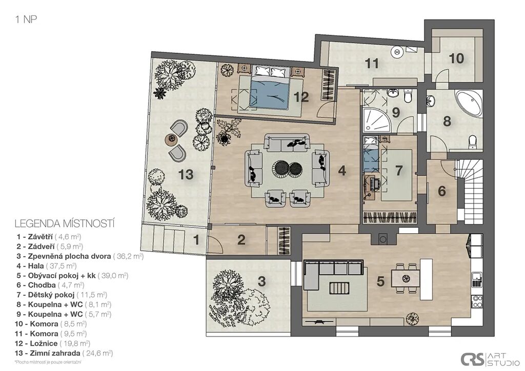 • podlahovou plochu 216 m², užitnou 236 m²