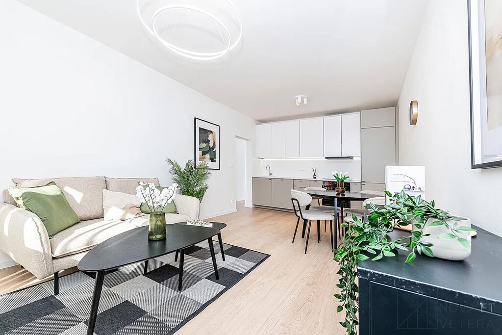 Byt právě prošel kompletní a kvalitní rekonstrukcí, která zahrnuje nové rozvody elektřiny, vody a odpadů, nové podlahy, moderní obklady a dlažbu značky Marazzi, koupelnu se sprchovým koutem a sanitou Grohe a také novou kuchyňskou linku se spotřebiči Gorenje, na kterou je poskytována prodloužená záruka 5 let.