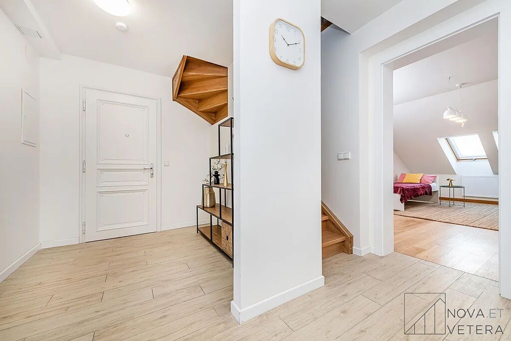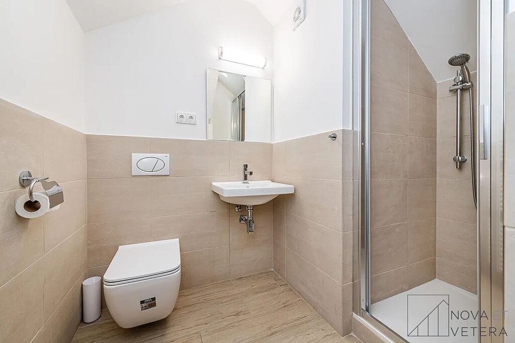 Na stejném podlaží se nachází ještě jeden podkrovní mezonet s dispozicí 4+kk ve stejném standardu.