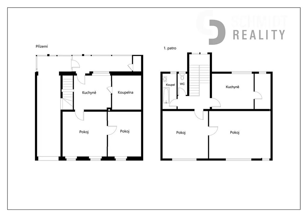 V patře je byt 2+1 v původním stavu.