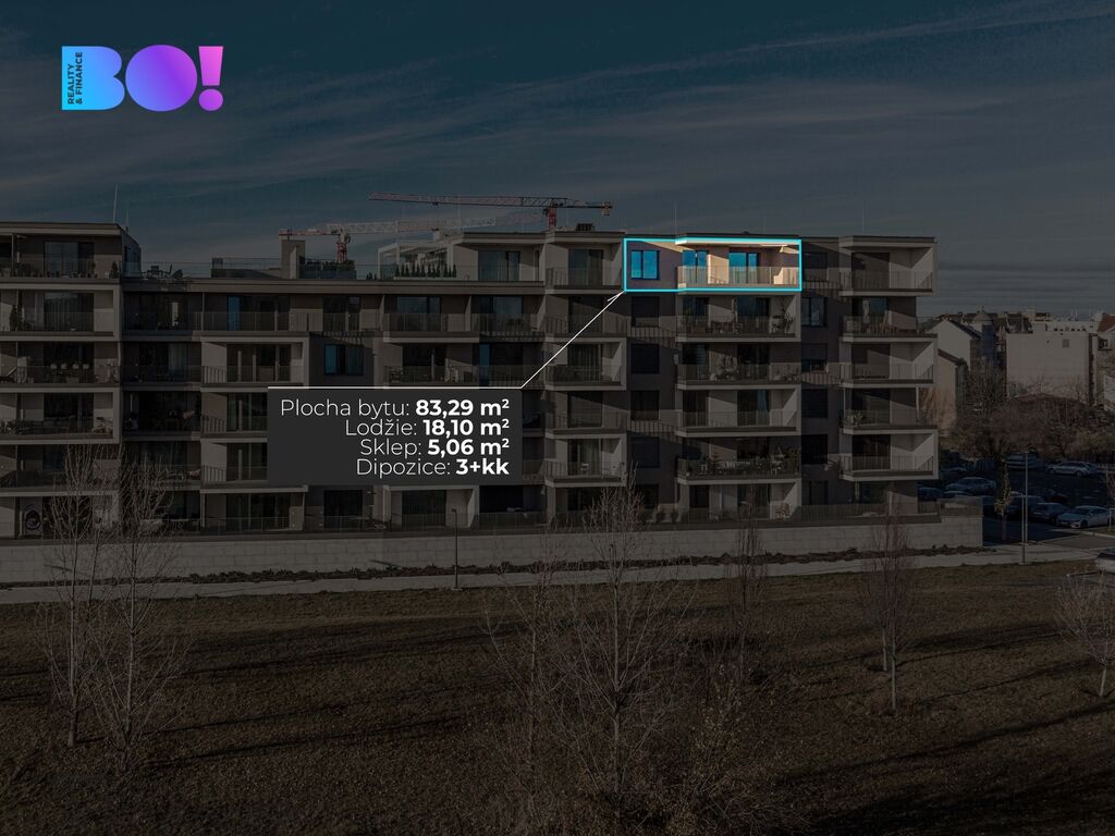 Byt o podlahové ploše 83 m² s lodžií 18 m² je šikovně dispozičně řešen tak, aby nabízel dostatek prostoru pro komfortní život.