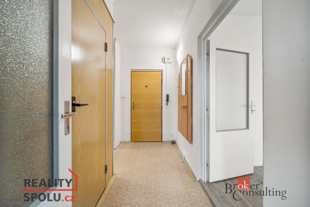 V bytě je také prostorné zádveří s vestavěnou skříní, které lze využít jako šatnu, umístit zde botník nebo vytvořit praktický úložný prostor. Koupelna je původní, ale plně funkční a splní svůj účel.