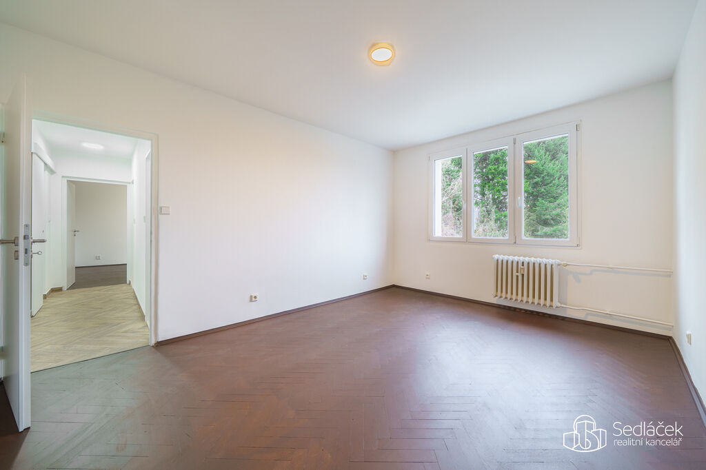 V obytných pokojích jsou zachovalé parkety, zatímco ve zbytku bytu se nachází vkusná dlažba zajišťující snadnou údržbu. Velká plastová okna přinášejí dostatek denního světla a umožňují příjemný výhled do okolí.
