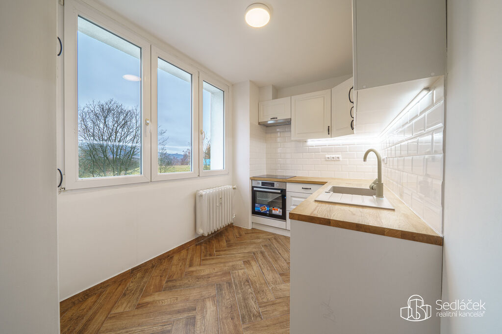 Samotný byt prošel renovací, takže nabízí příjemné spojení moderních úprav a stabilního, dobře fungujícího zázemí. Nové rozvody vody i elektřiny- to je základ. Kuchyň je světlá a prostorná, vybavená úplně novou kuchyňskou linkou včetně připraveného místa pro myčku na nádobí. Díky prostoru pro jídelní stůl se stává přirozeným centrem domácnosti – ideálním pro společná jídla i každodenní provoz.