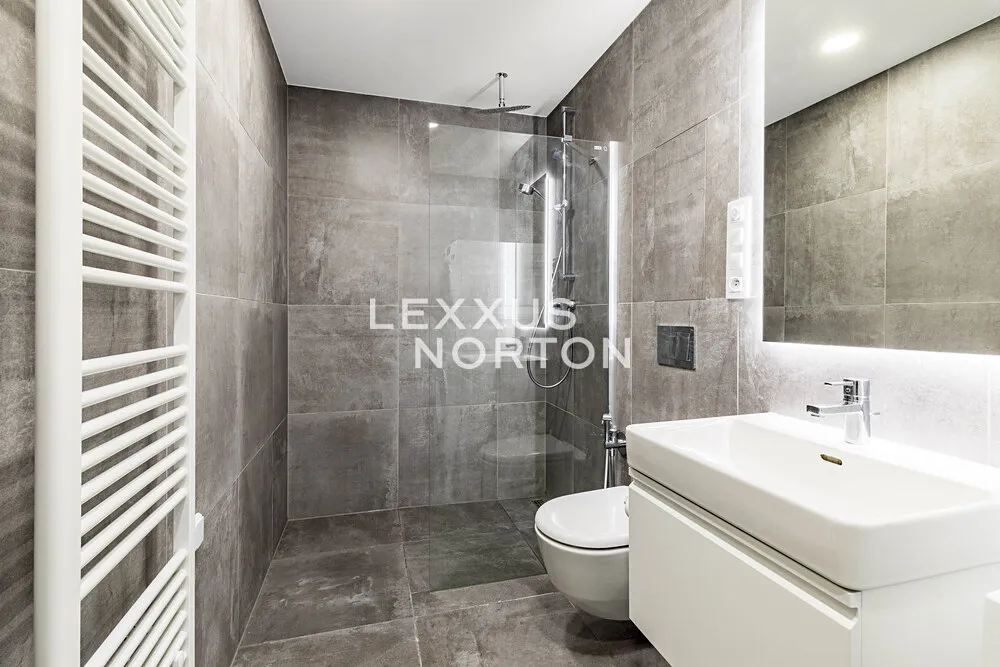 Kuchyňská linka vybavená všemi spotřebiči Miele. Dubové parketové podlahy. Elektricky ovládané předokenní žaluzie. Bezpečnostní vstupní dveře.