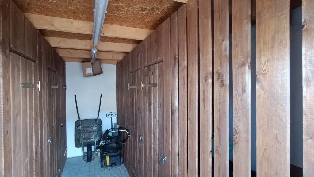 Součástí prodeje je také sklepní kóje 5 m² a parkovací stání pro dva automobily přímo u domu. Celý pozemek je uzavřený a sdílí jej pouze šest vlastníků dvou totožných bytových domů s vlastním společným vjezdem, což zajišťuje pocit bezpečí a soukromí.