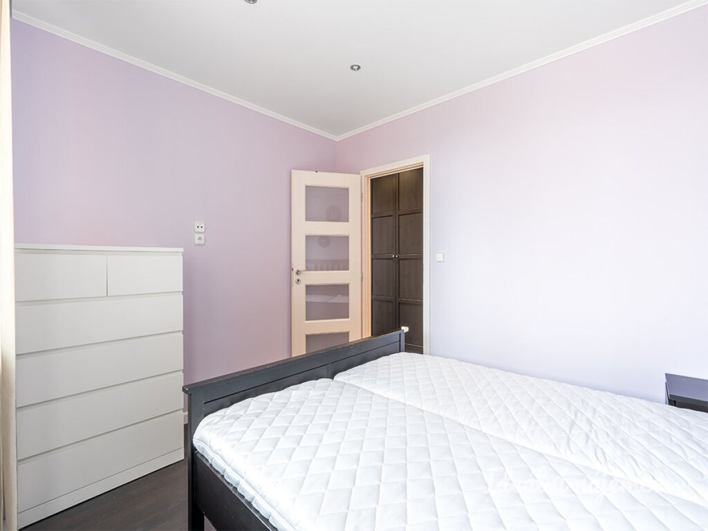 Nachází se v 6.patře panelového domu s výtahem. Skládá se ze vstupní chodby zařízené velkou vestavnou skříní, svou pokojů - dětského pokoje a ložnice, ze které lze vejít na velmi prostornou, zasklenou lodžii, obývacího pokoje společného s kuchyňským koutem.