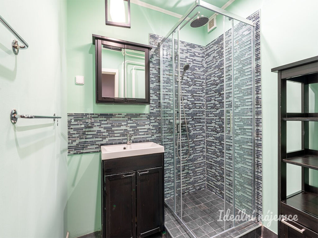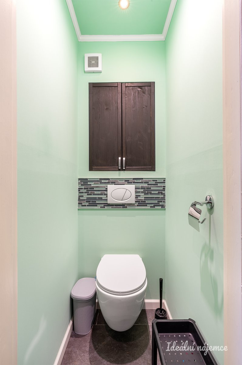 Toaleta je umístěna samostatně. koupelna je zařízena sprchovým koutem a umyvadlem.