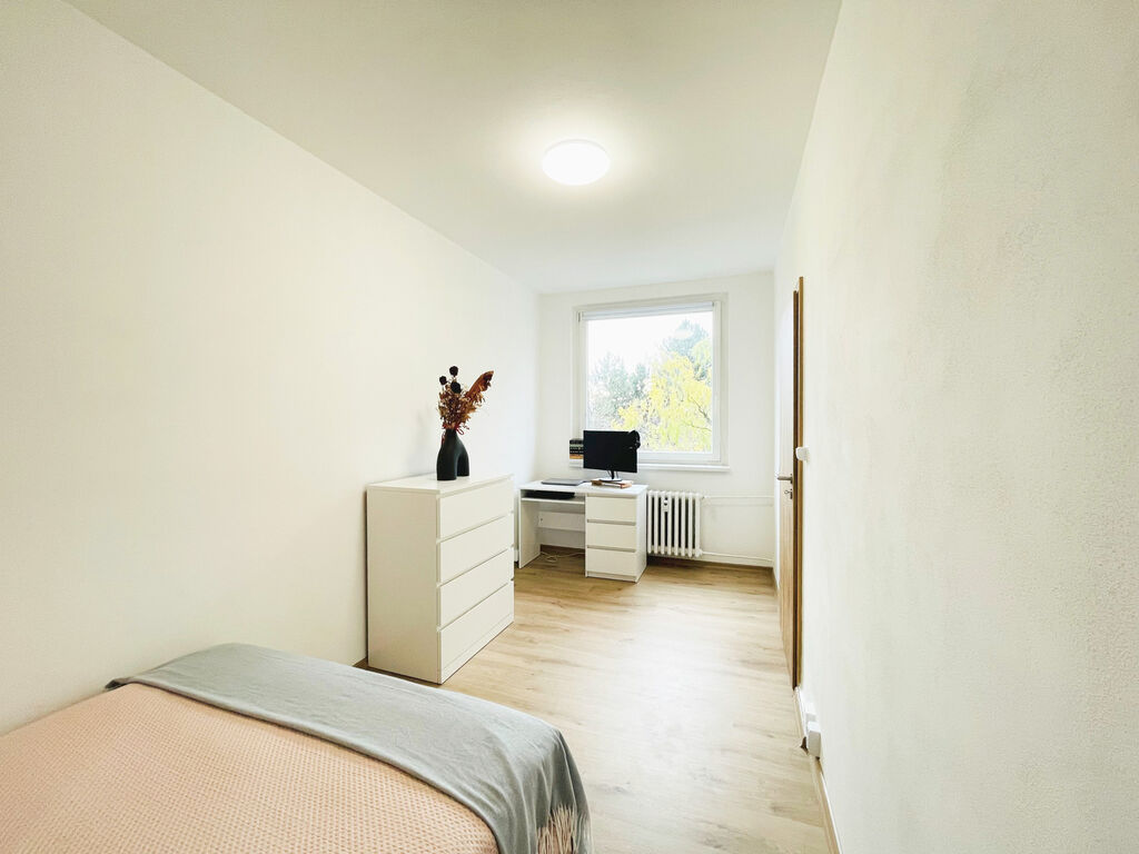 Byt byl zrekonstruován „od podlahy“ – doslova. Nové omítky, rozvody elektřiny, podlahové krytiny, interiérové dveře i kompletně nová koupelna přinášejí pocit, že vstupujete do zcela nového bydlení. Díky světlým materiálům a čerstvému designu působí byt velmi vzdušně a moderně.