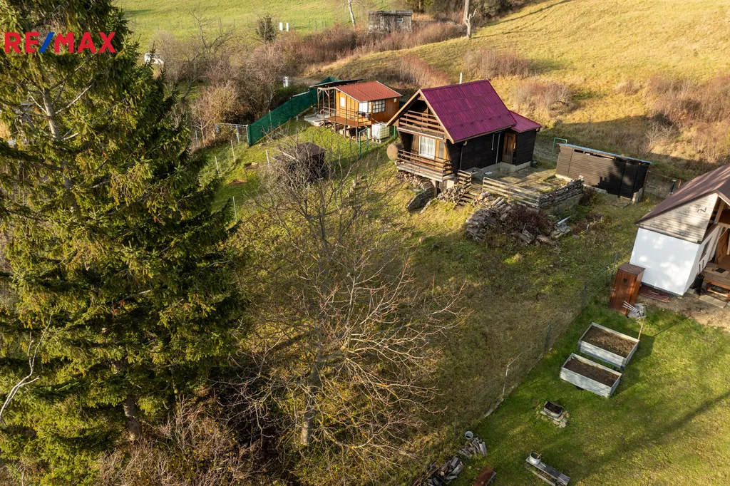 Celková plocha pozemku včetně zastavěné je 599m². Příjezd k chatě je zajištěn po obecní cestě.
