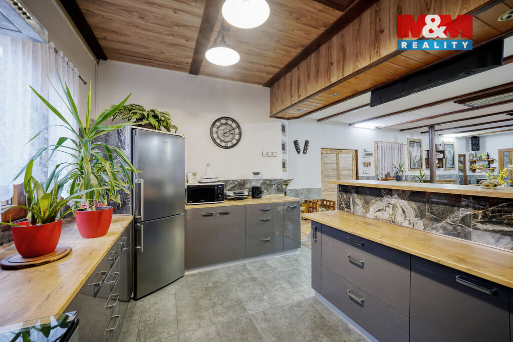 K prodeji nabízíme prostorný rodinný dům na výjimečném místě, který vznikl kompletní přestavbou původní hospody. Díky tomu nabízí velkorysý hlavní obytný prostor s kvalitní akustikou, moderní plně vybavenou kuchyní a dominantním krbem, který dává domu charakter i příjemné teplo. Dispozice zahrnuje dva samostatné pokoje, dvě koupelny, více než dvě WC, zimní zahradu, posilovnu a saunu – praktické zázemí, které běžné domy v této kategorii jednoduše nemají.