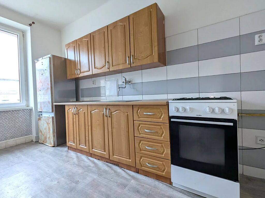 V kuchyni je kuchyňská linka s plynovým sporákem a volně stojící lednice. V koupelně je vana umyvadlová skříňka se zrcadlem a WC je odděleno příčkou. Byt je světlý a prostorný. Momentálně zde probíhá revitalizace, aktuální foto bude doplněno.