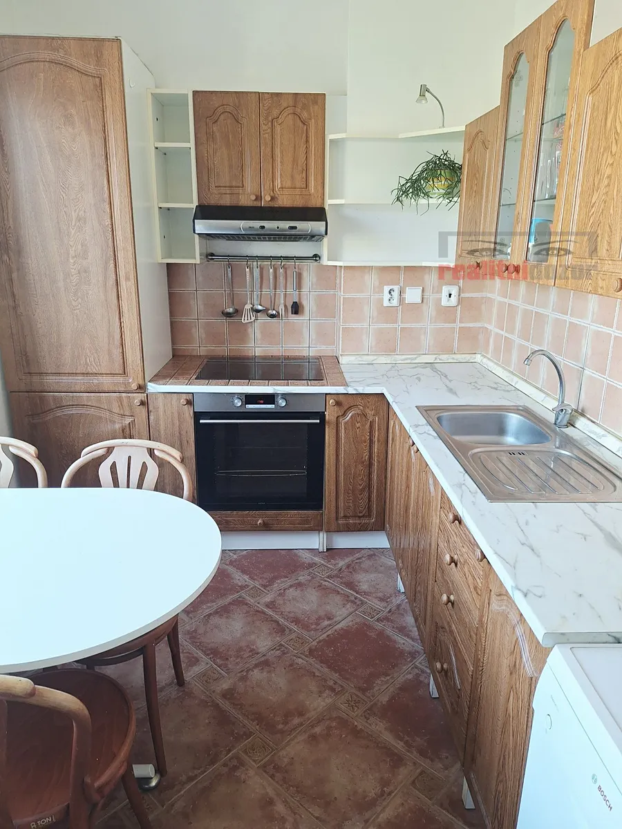 Součástí prodeje je kuchyňská linka včetně vestavěných spotřebičů (dřez s vod.baterií, trouba, sklokeramická deska) a bude při předaný vyklizený.